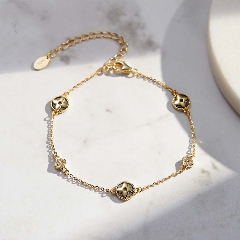 This is a 925 sterling silver four-petal flower bracelet (available in gilded and silver versions) focused on a light luxury vintage style, with core highlights as follows: