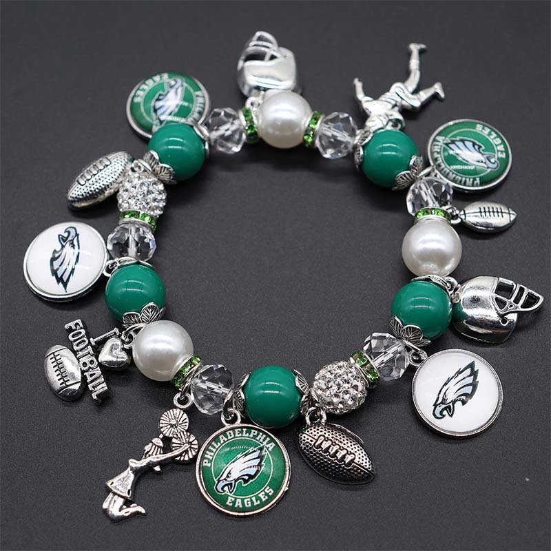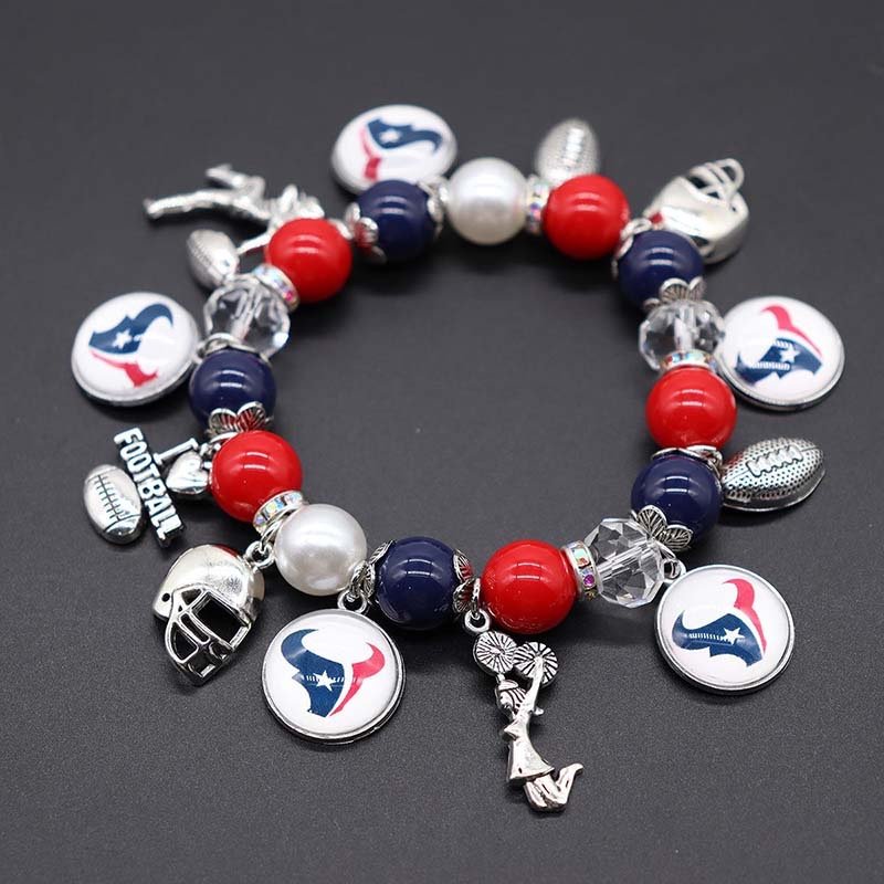 - Main Body: Composed of colored beads (orange/black/pearl white) + clear crystal beads, paired with alloy pendants featuring team elements (including the team logo, football, helmet, player silhouette, etc.).