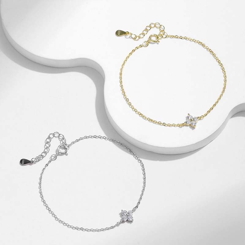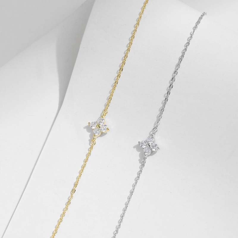 • Visual Effect: The dainty chain and small diamonds create a lightweight, 气质 – enhancing look; the four-leaf flower decoration draws focus, retaining the sophistication of fine jewelry without feeling bulky.