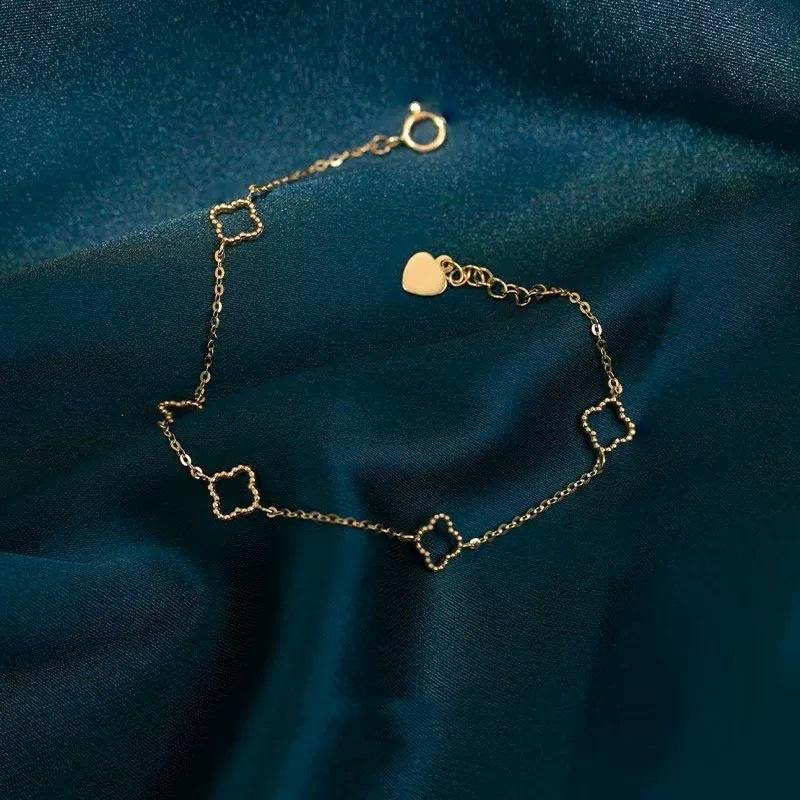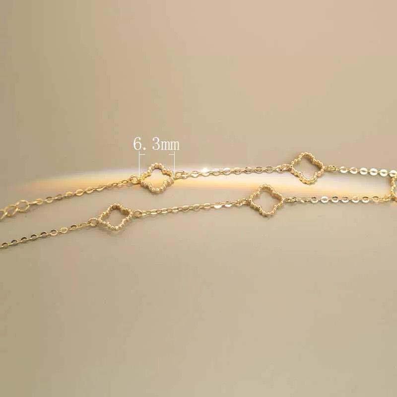 - Decorative Elements: 5 hollow four-leaf flower ornaments are evenly distributed along the chain. The petal edges are rounded, and the inner hollow design creates a translucent texture.