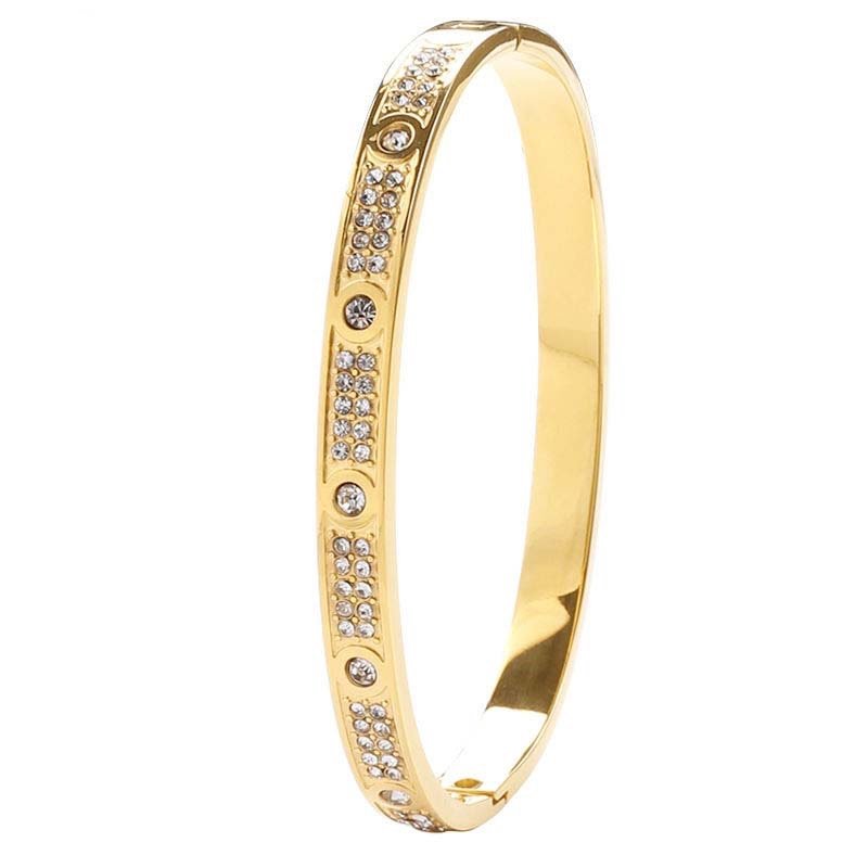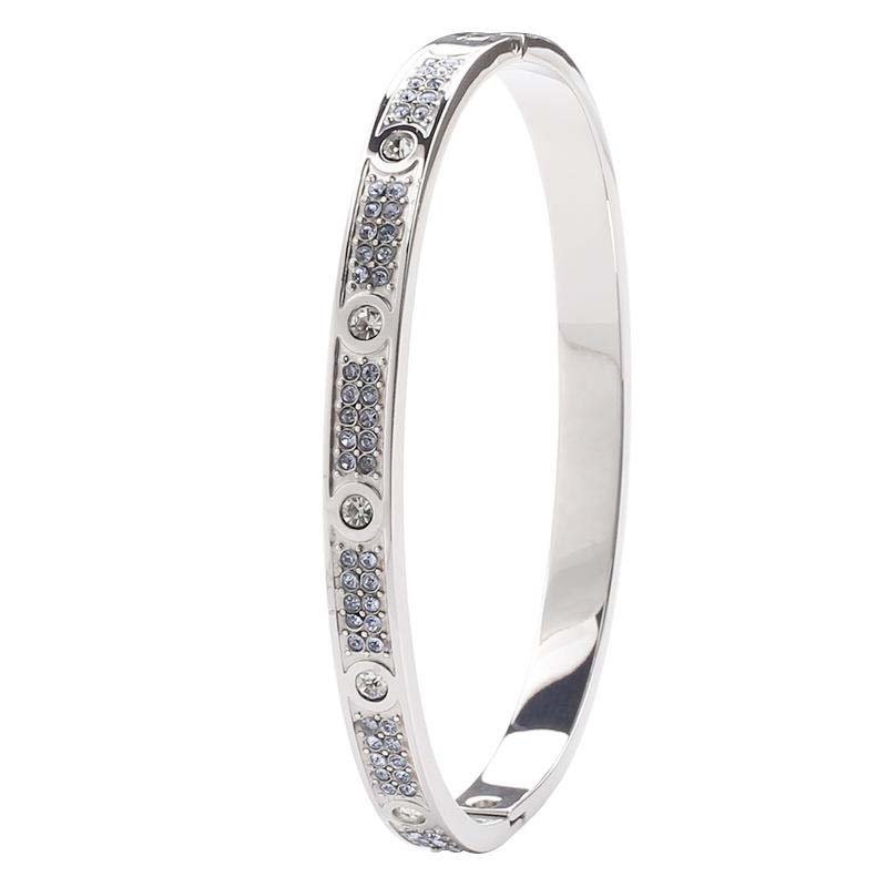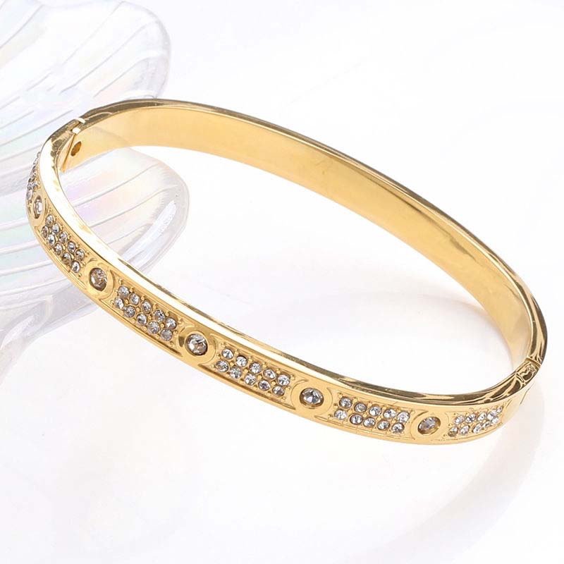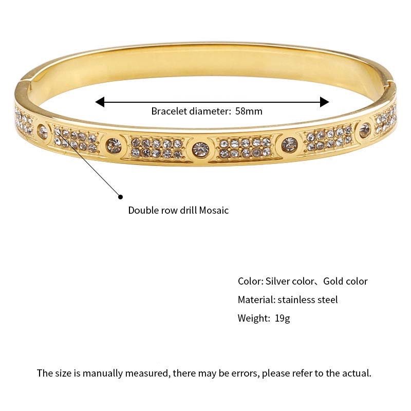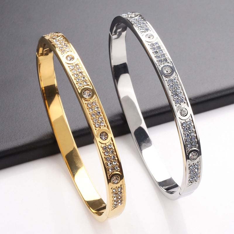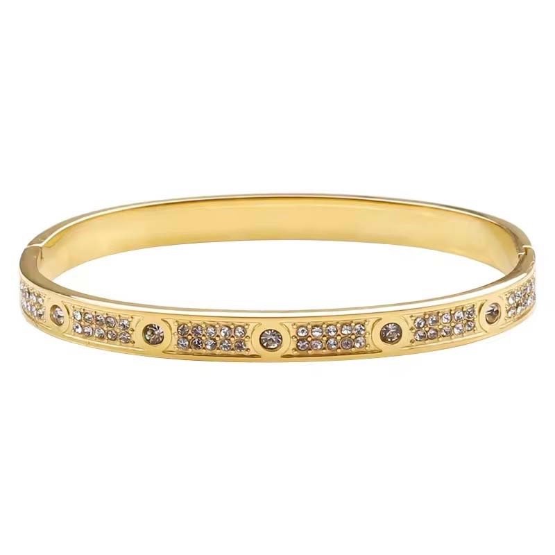 Centered on “fully diamond-inlaid texture + narrow bangle body”: The diamond-inlaid area creates a luxurious focal point, while the narrow polished section balances visual heaviness—blending light luxury and delicacy.