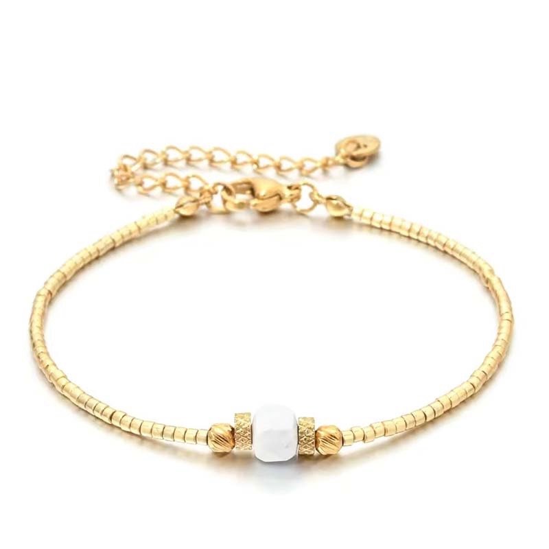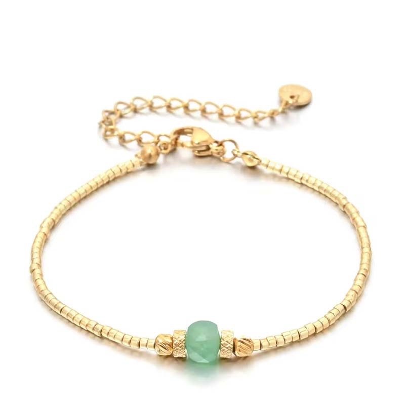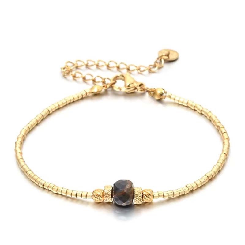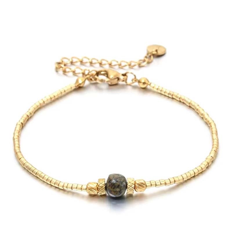 The smooth gold finish and polished blue stone maintain a sleek,timeless appearance (avoid harsh chemicals to preserve the bead texture and stone luster).