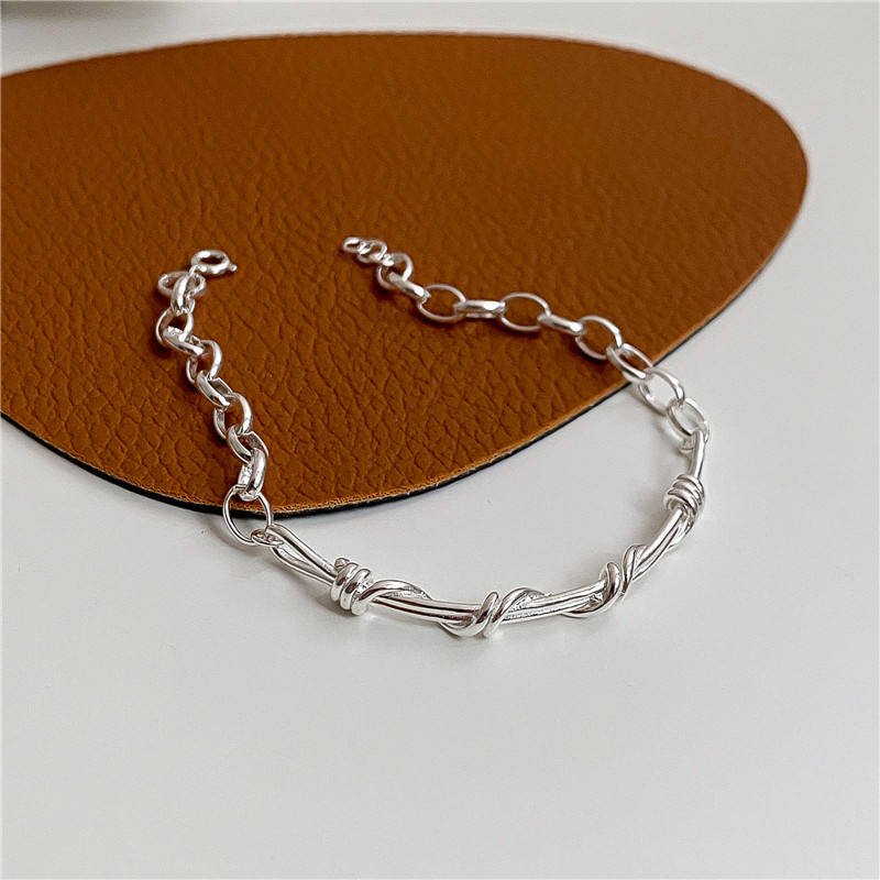 Features a handcrafted twisted wire design (smooth silver wire woven into a textured chain),paired with a simple link extension chain — the organic,artisanal texture adds a unique,bohemian touch.