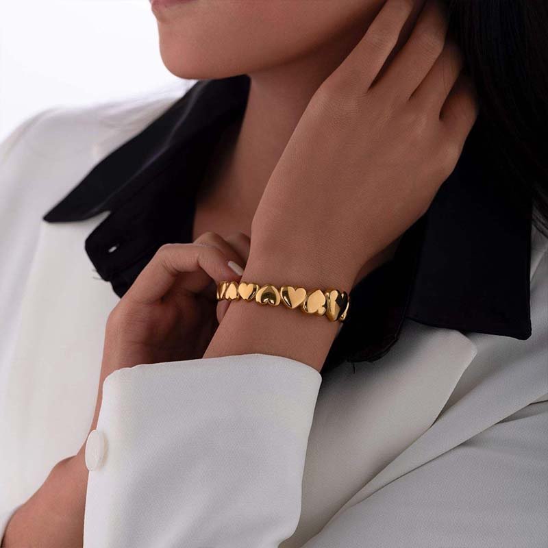 Centered on “heart patchwork + polished finish”: The staggered arrangement of small and large hearts avoids monotony, while the polished material gives the sweet element a stylish edge.