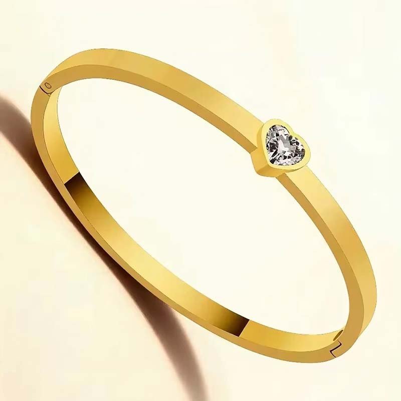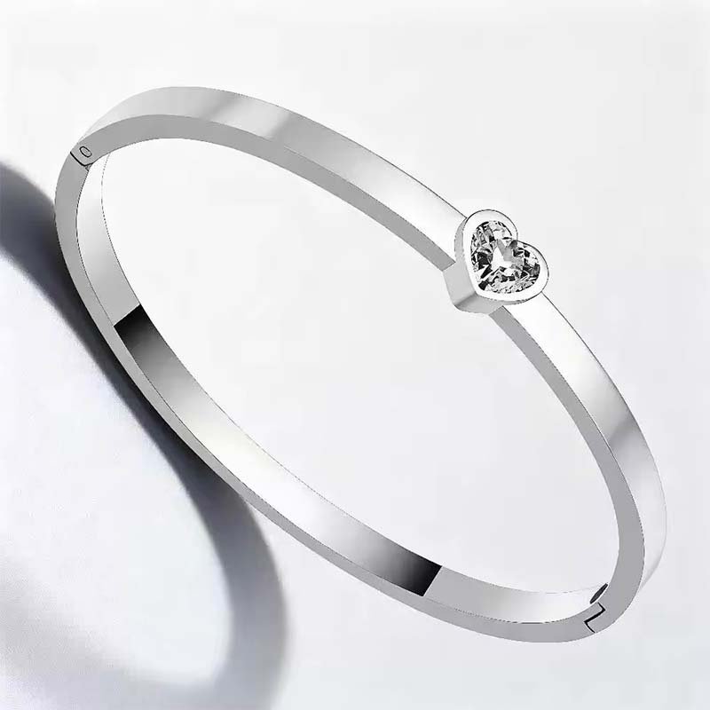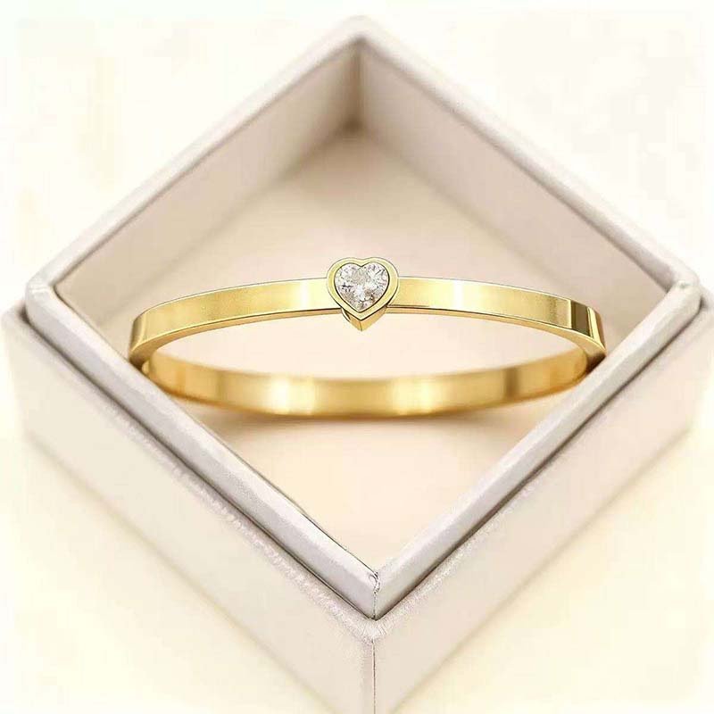 1. Heart + Thin Circle: The slim, polished bangle maintains a minimalist texture, while the heart-shaped diamond detail adds a sweet touch—lightweight and non-bulky.