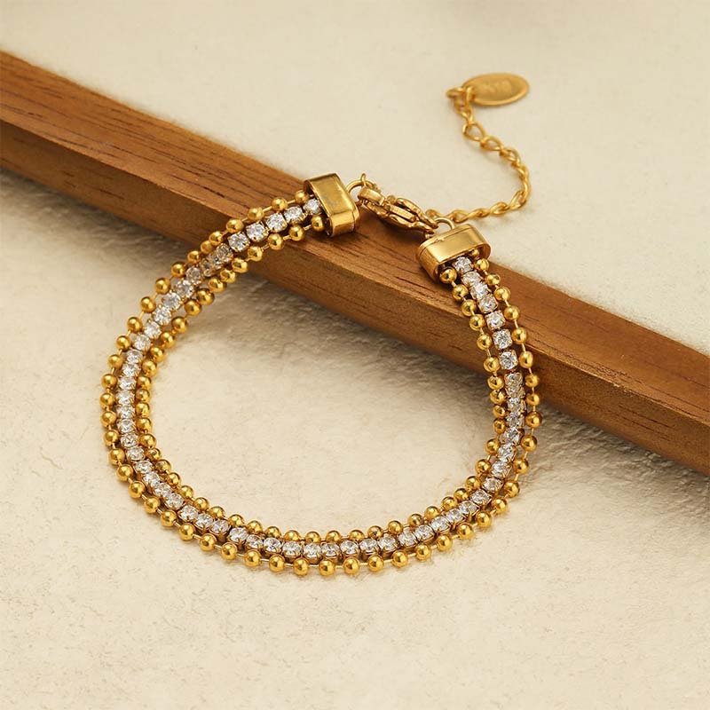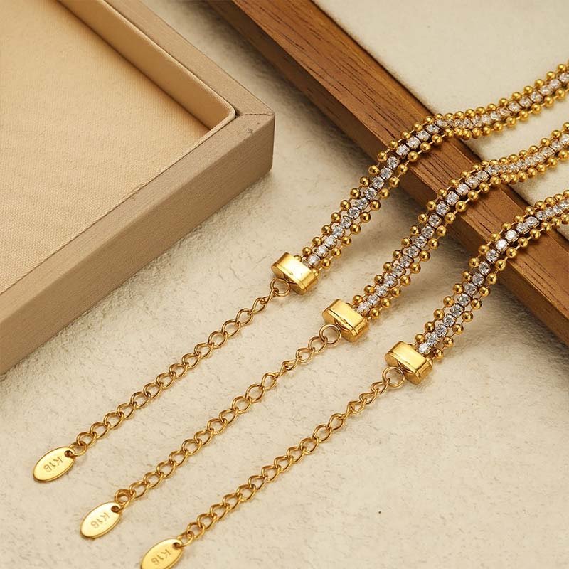 Centered on “multi-strand layering + gold beads & diamonds”: Retro gold beads exude opulence; the diamond chain adds shimmer; multi-strand styling enhances visual depth—making it a “glamorous yet tasteful” daily accessory.