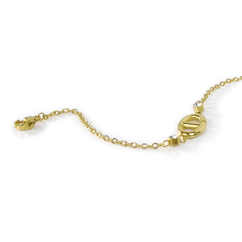 The pale gold chain rests gently against the wrist, and the openwork CD logo is Christian Dior’s iconic secret signal. Two zircons glint like fallen stars, amping up the minimalist sophistication