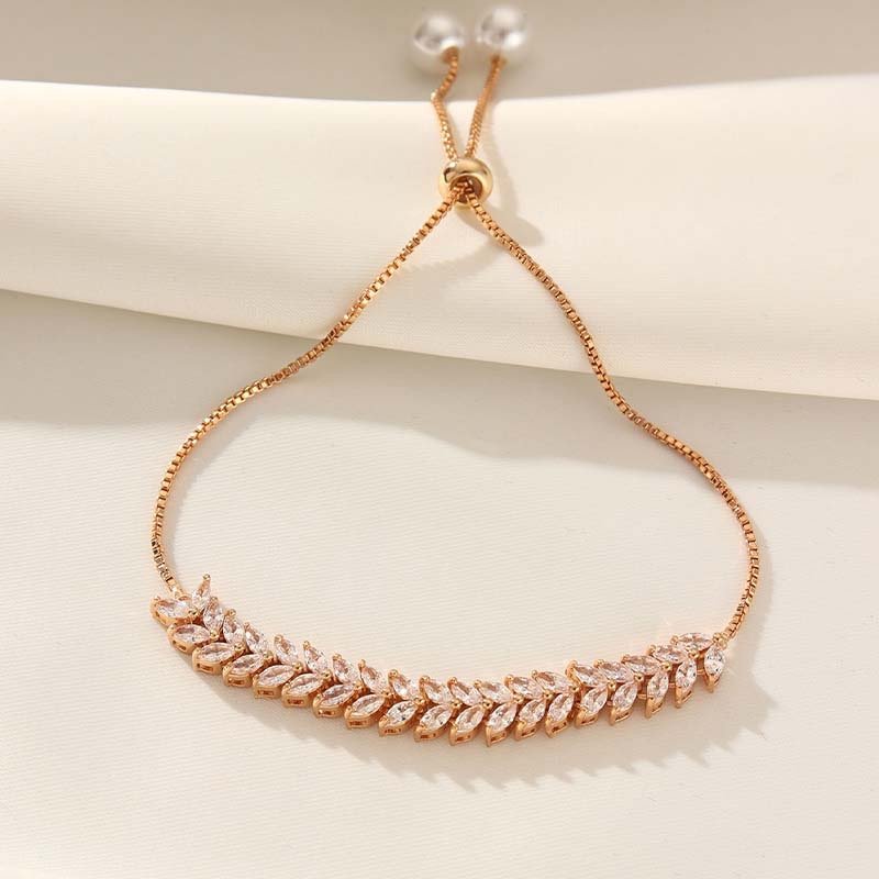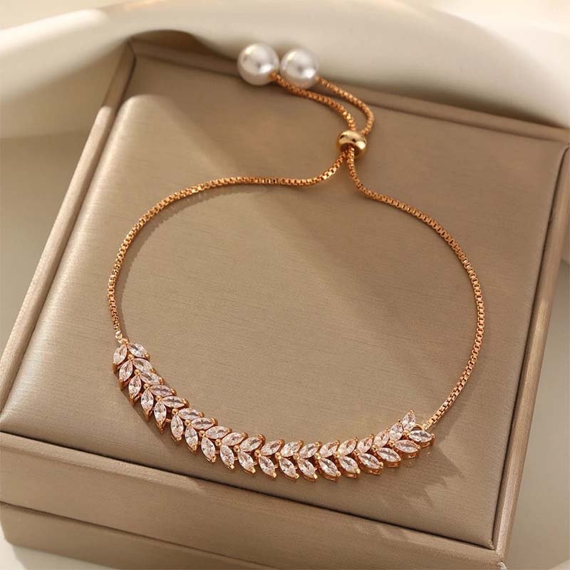 Features a slender rose gold snake chain paired with a clustered leaf charm: multiple marquise-cut crystals (inlaid in rose gold leaf frames) form a “feather-like” arrangement,shining brightly with movement.