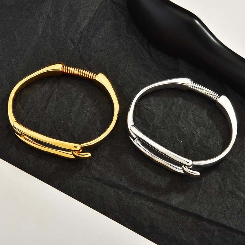 - The design replicates a safety pin structure: the bangle body acts as the “pin shaft,” and the opening features “pin clasp + spring texture” decorative details—blending creativity and recognizability.