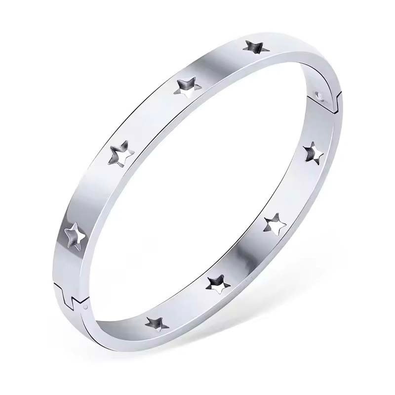 • Materials & Craftsmanship: Made of color-plated stainless steel (gold/silver/rose gold), the slim bangle is evenly decorated with 3D star cutouts. The metal surface is high-gloss polished for a smooth, premium luster; paired with a push-button clasp, it opens and closes easily and securely, with delicate, deformation-resistant star cutout details.