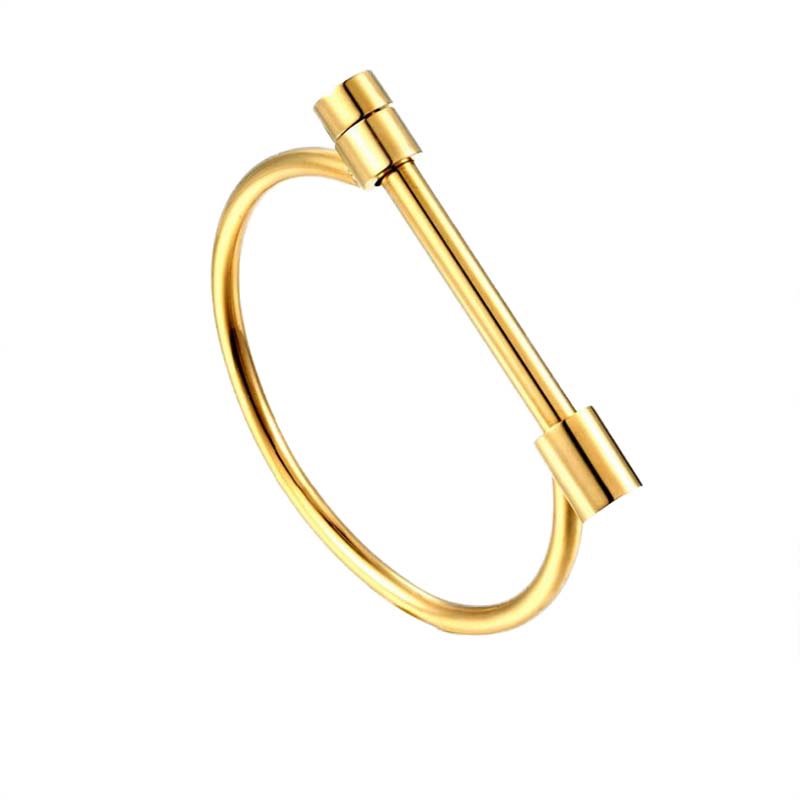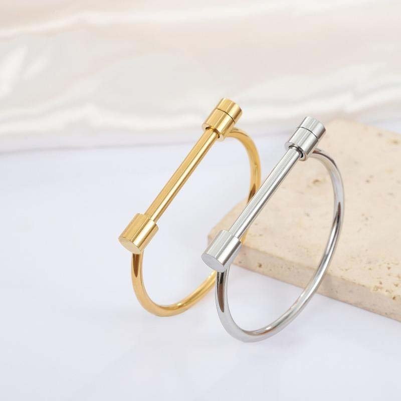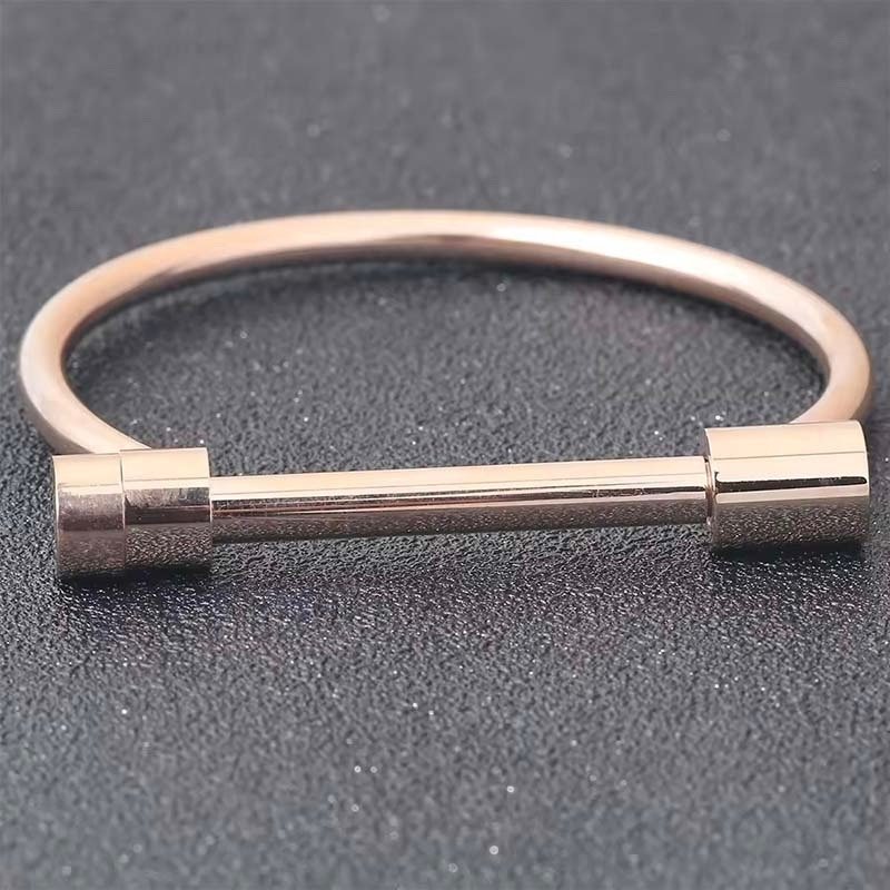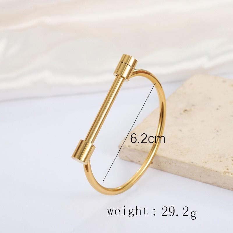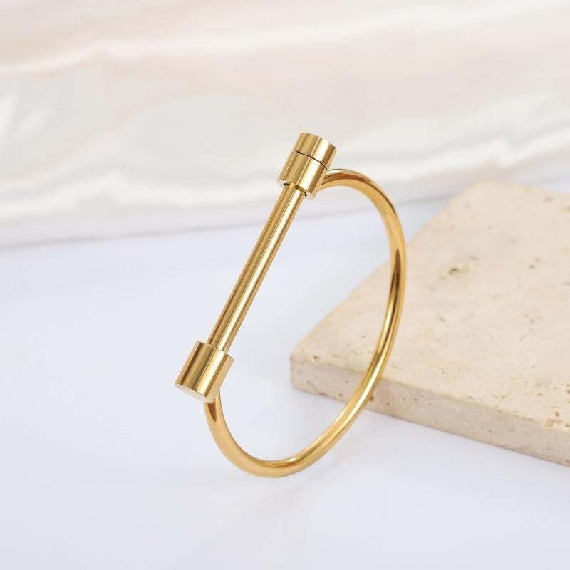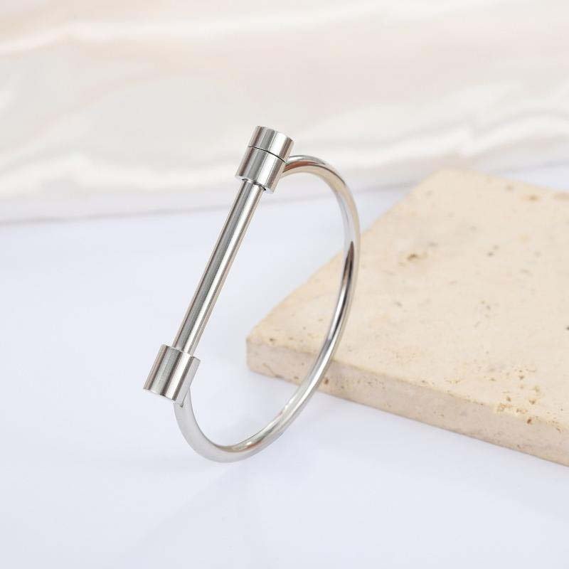 • The bangle features a slim, polished circular body paired with a T-bar clasp (the clasp ends have textured, non-slip details), seamlessly integrated with the bangle.